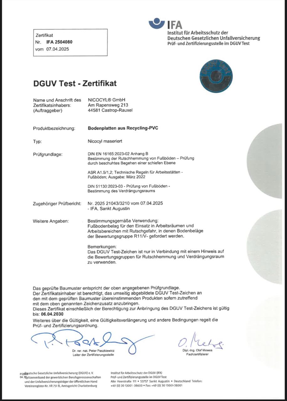 | Eigenschaften | abrieb- und verschleißfest, fußwarm, ergonomisch und gelenkschonend, geräusch- und schallmindernd, Rutsch -festigkeitsklasse wahlweise R 11 oder R 10, lebensmitteltauglich auf Anfrage |